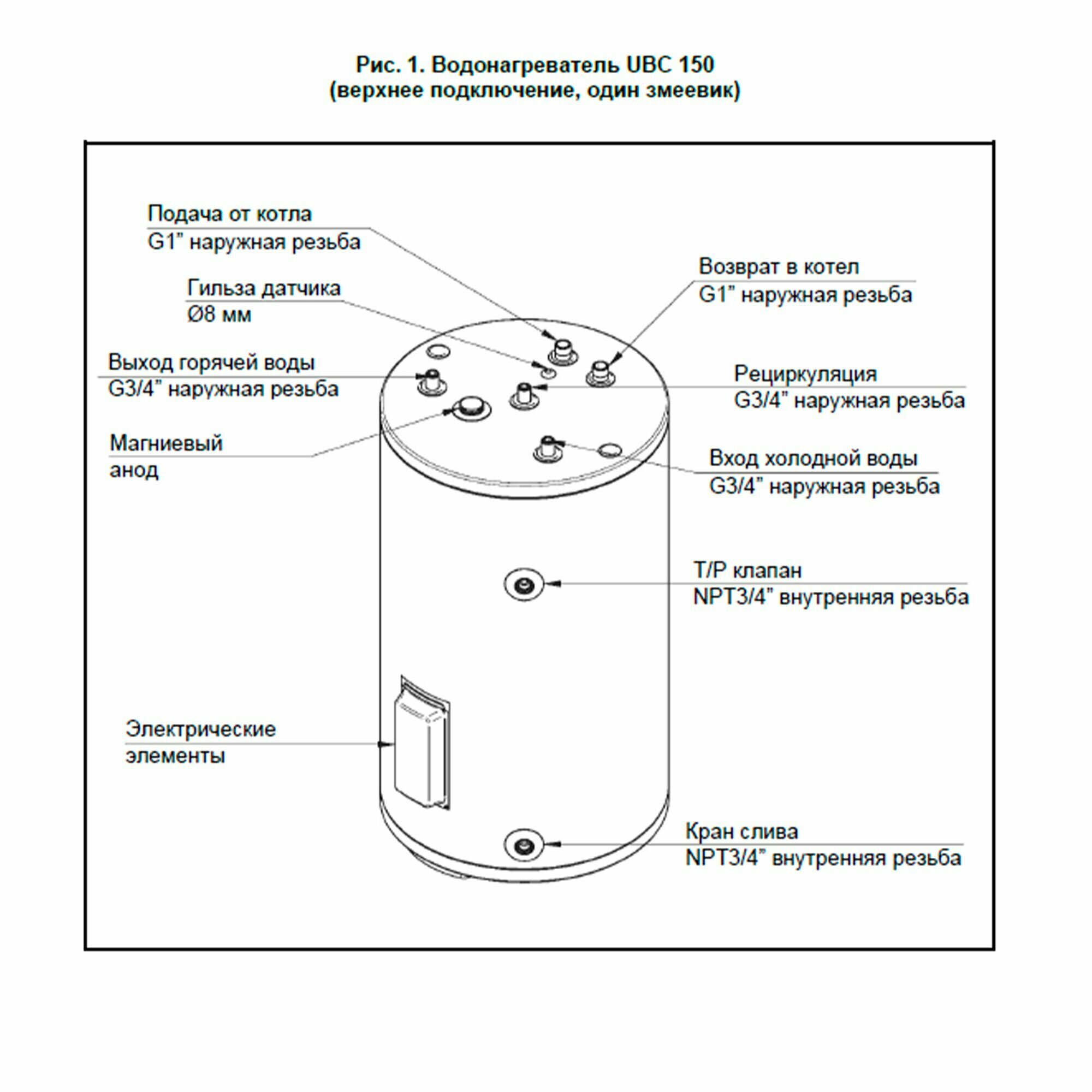 Бойлер косвенного нагрева BAXI UBC 150 напольный, одиночный змеевик, с верхним подключением
