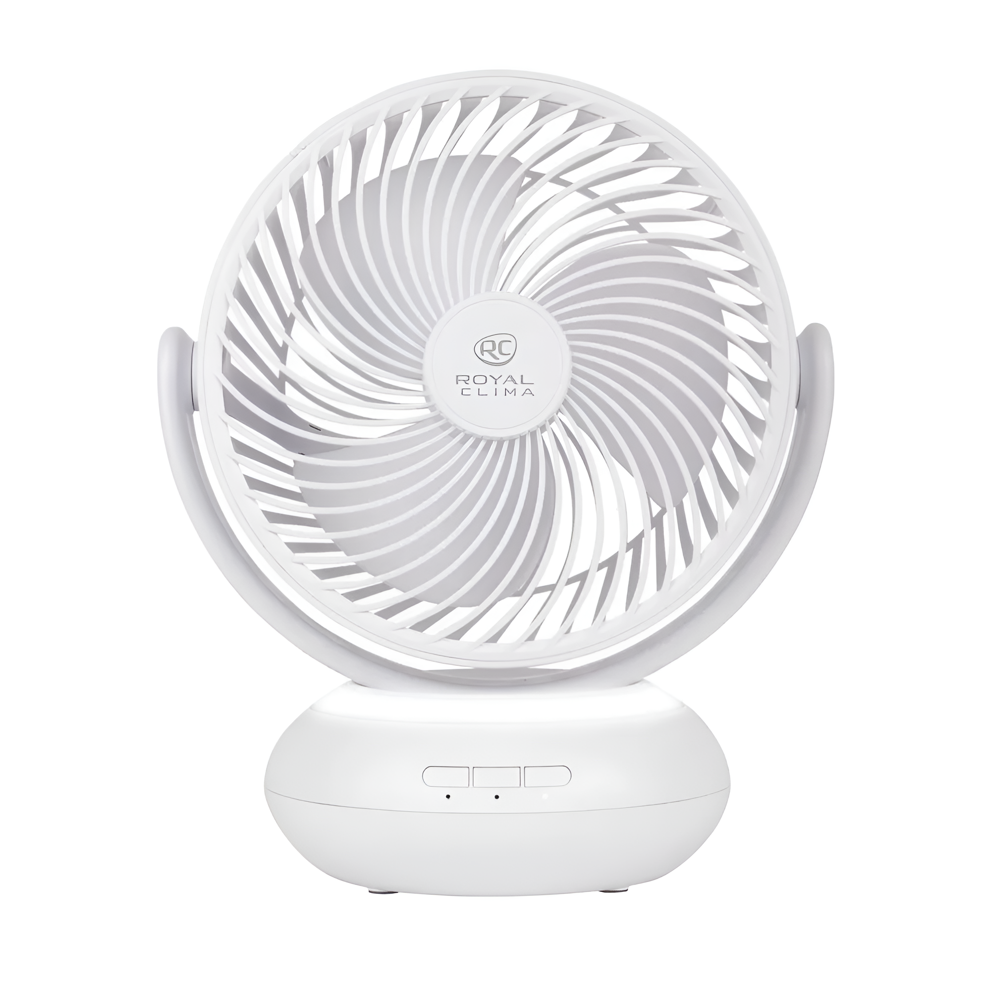 Настольный вентилятор RSF-0701E-WT от ROYAL CLIMA с аккумулятором позволяет работать без подключения к сети до 10,5 часов.