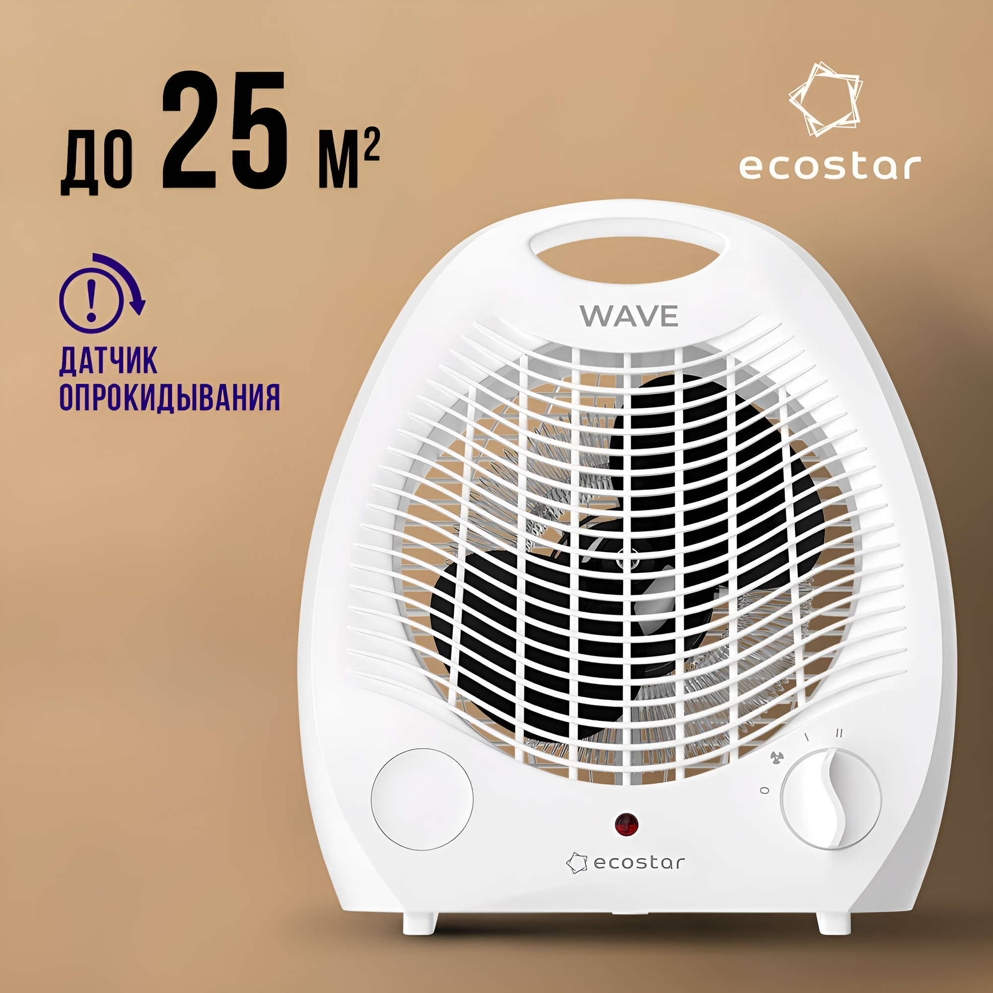 Электрический тепловентилятор ECOSTAR WAVE EFH-W2000DS-WH, 2 режима, механический, белый