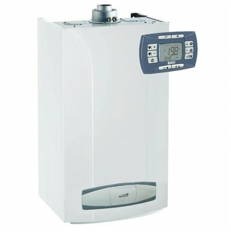 Газовый котел монтируется на стену, есть возможность установить панель управления в то место, в котором обладателю будет удобно управлять оборудованием. Ультрасовременная цифровая плата поставляется также в беспроводном варианте. Это оборудование третьего поколения со съемной цифровой панелью управления обеспечивает комфортную температуру в доме при любой погоде за окном без лишних хлопот. Гарантия качества от BAXI.