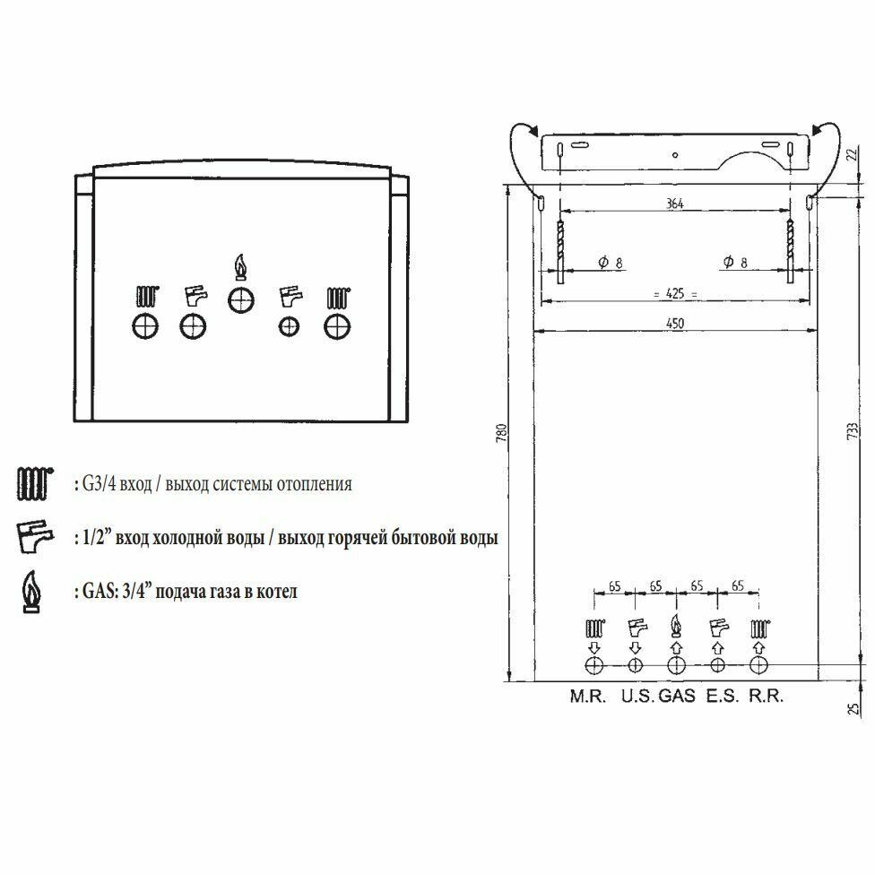 - Встроенный трехходовой клапан для бойлера (без сервопривода) в одноконтурных моделях.