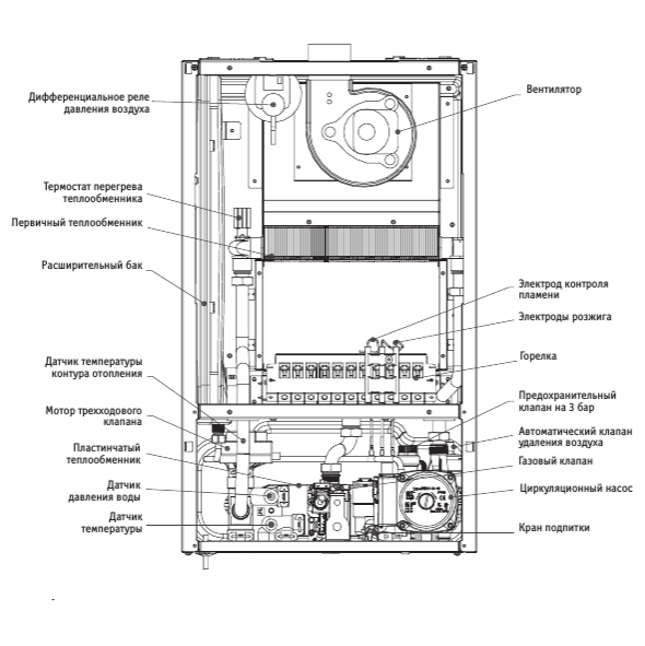 Система контроля пламени отслеживает его наличие и при необходимости отключает прибор.