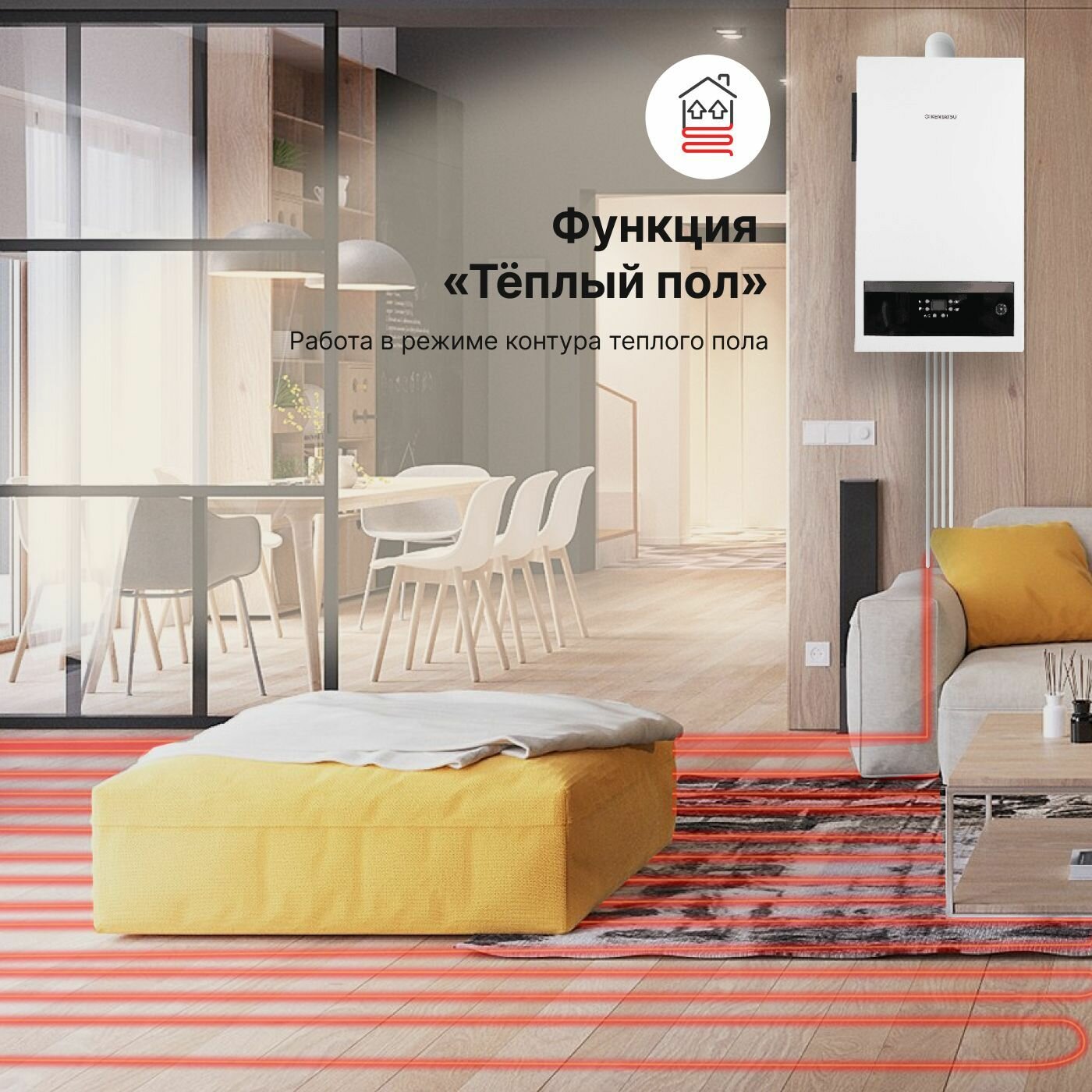 Двухконтурный настенный газовый котёл с закрытой камерой сгорания Kentatsu Nobby Smart II 32-2CSF представляет собой совершенный баланс в отношении цена-качество. Предназначен для работы в системе отопления и горячего водоснабжения. Укомплектован надежными, качественными комплектующими. Разработан в традиционном сдержанном дизайне. Котел универсален и удобен в эксплуатации. Благодаря высокому коэффициенту мощности, равному 92,9% и тепловой мощности 31,6 кВт, Nobby Smart II получил широкое применение в загородных и частных домах, а также нежилых помещениях, площадью до 320 м2. Оснащен необходимой системой безопасности и защиты. Теплообменник состоит из первичного и вторичного, которые, в свою очередь, подогревают воду в системе отопления и горячего водоснабжения. При такой компоновке вода из контура отопления подогревает воду для горячего водоснабжения. Настенный газовый котел Кентатсу - это мини котельная, способная нагреть два контура: систему отопления и систему горячего водоснабжения. В качестве топлива используется природный или сжиженный газ. Котел подбирается с учетом площади помещения. Самый простой способ определить примерную мощность газового двухконтурного котла — разделить площадь дома на 10 (1 кВт = 10 м2) и умножить на поправочный коэффициент 1,2–1,5 (20–50 процентов — запас для нагрева воды и учета пиковых нагрузок). Nobby Smart II, котел с закрытой камерой - это значит, что воздух поступает с улицы, а вывод продуктов сгорания происходит при помощи принудительной тяги — прибор оборудован встроенным вентилятором. Такой котел подключается к дымоходу. Газовый котел Kentatsu Nobby Smart II32-2CSF - идеальное решение для обогрева и горячего водоснабжения помещений любого типа и планировки: в квартирах, загородных домах, коттеджах и различных нежилых помещений. Заказывайте это оборудование на климатическом маркетплейсе conditioner.market. Мы обеспечиваем прозрачность сделки, прямые поставки от вендоров и официальную гарантию завода-изготовителя.