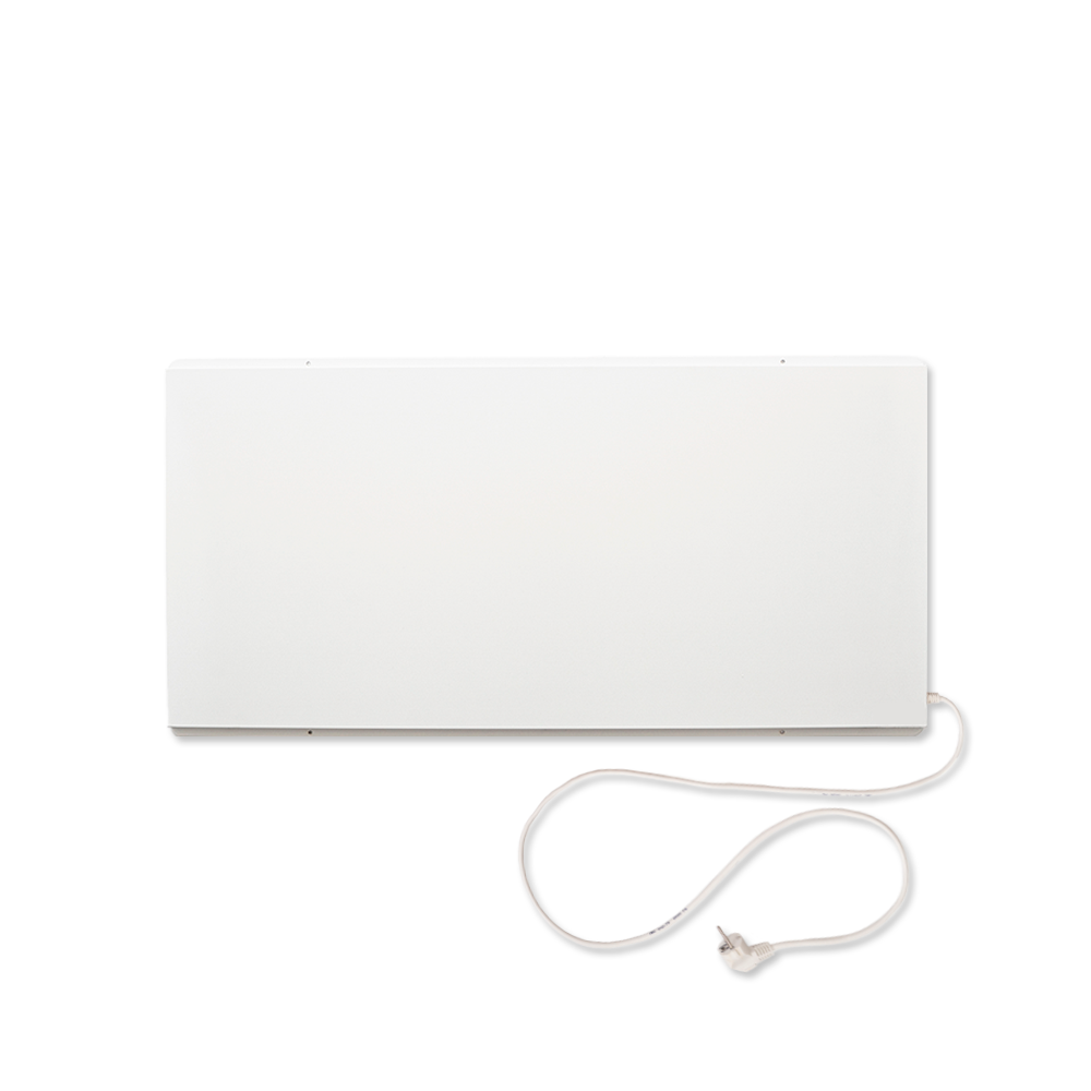 Корпус обогревателя выполнен из оцинкованной стали. Он имеет размеры 1400х700х30 мм и весит 13 кг. Мощность устройства составляет 800 Вт, напряжение – 220 В, сила тока – 3,6 А. Температура нагрева достигает +85°C. Белый цвет и длина кабеля 1,6 метра делают этот обогреватель универсальным решением для любого интерьера.