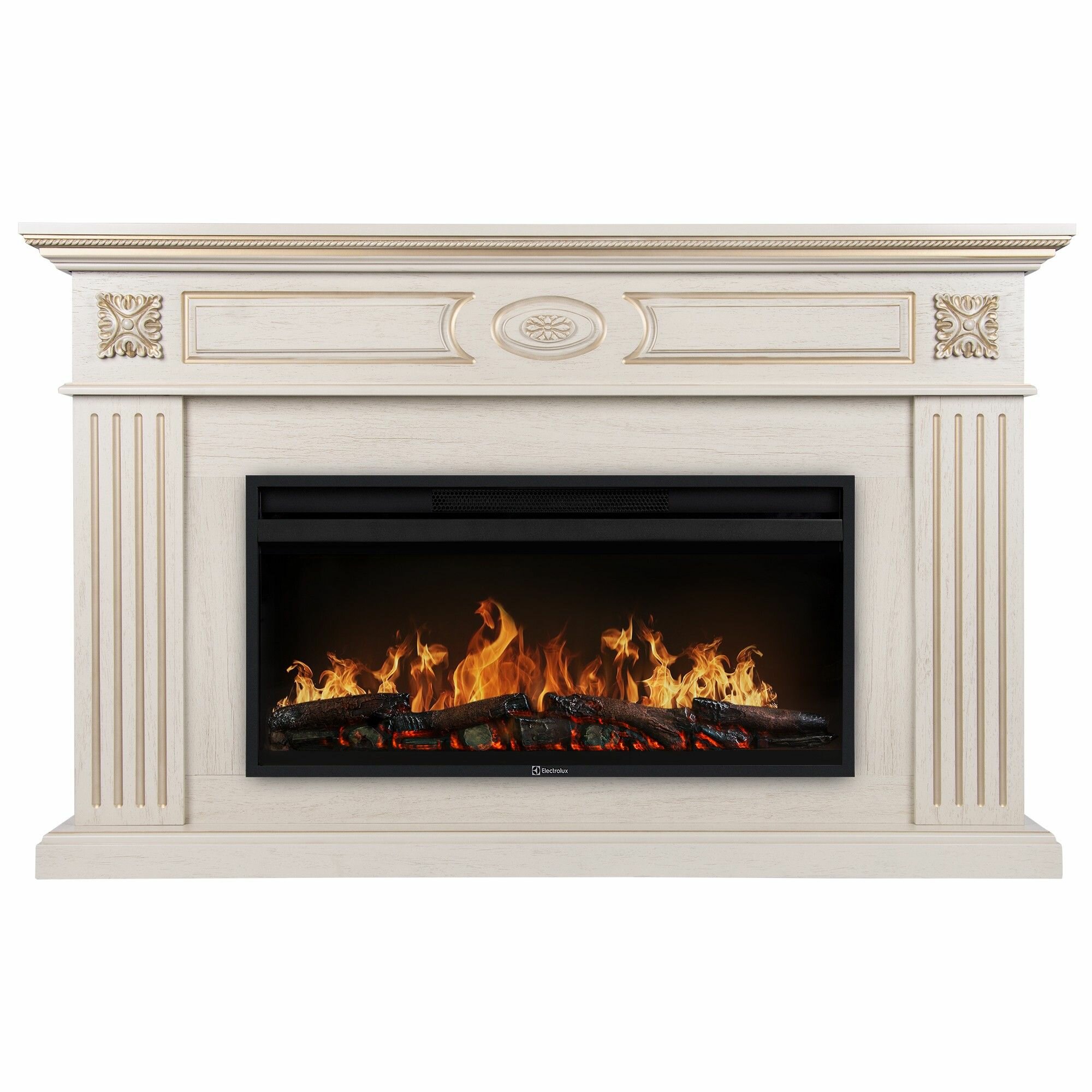 Каминокомплект: Очаг Electrolux EFP/P-3620LS, портал Siena 42/40/36, сл. кость с зол. патиной
