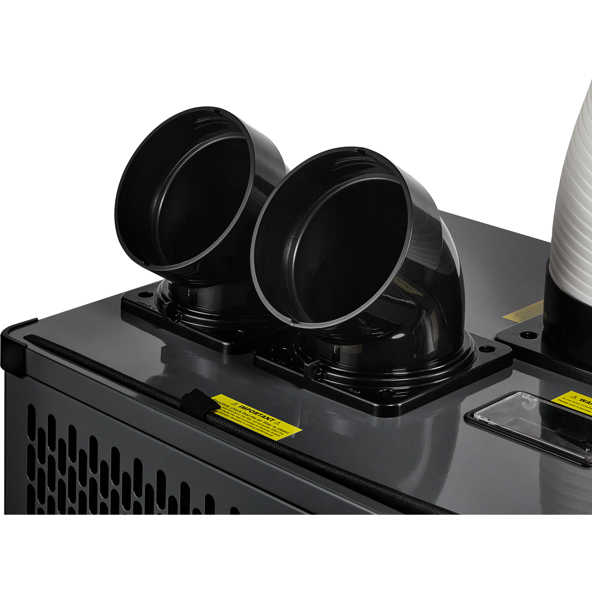 В кондиционерах реализовано 3D распределение воздушного потока благодаря гибким патрубкам выполненным из плотного ABS пластика. Каждый из них может быть доукомплектован перфорированным воздухораспределительным рукавом, длиной до 5 метров, обеспечивая полное покрытие помещения.