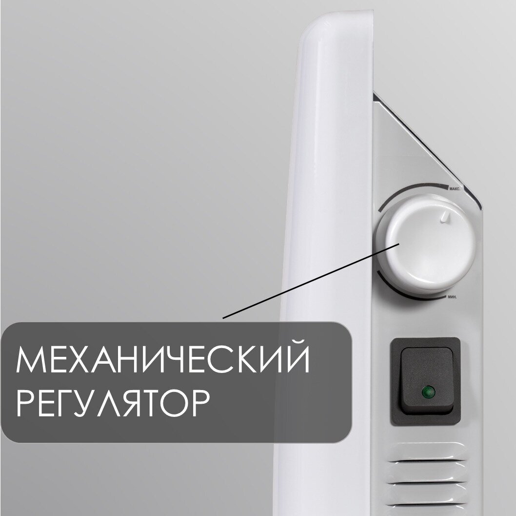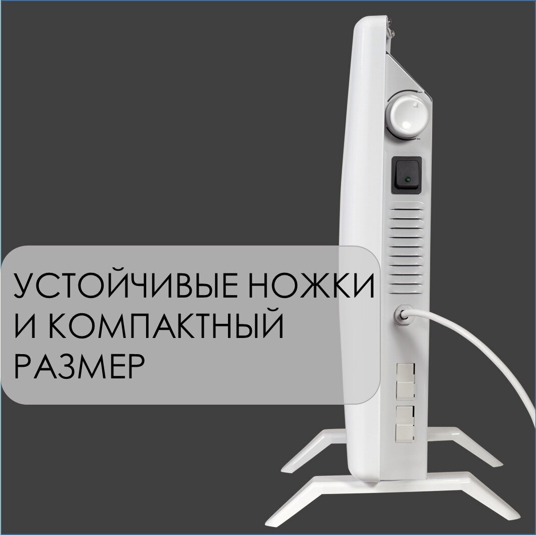 Прибор оснащен механическим термостатом, позволяющим поддерживать заданную температуру. Современный дизайн позволяет модели гармонично вписаться в любой интерьер. Для напольного и настенного монтажа в комплекте есть все необходимые крепления. Особенности и преимущества: Усиленная конвекция и эффективность работы Особая форма корпуса конвектора улучшает конвекцию горячего воздуха за счт расширяющегося кверху воздушного канала Современный дизайн конвектора Современный внешний вид позволяет гармонично вписать конвектор в любой интерьер, белоснежная панель с декоративным тиснением подчеркивает лаконичный стиль прибора Компактные размеры Компактные размеры прибора позволяют применять прибор для отопления в малогабаритных помещениях и делают его практически незаметным Встроенная панель управления Удобная в эксплуатации, интуитивно понятная панель с механическим управлением Безопасность эксплуатации Функция отключения конвектора при отклонении от вертикали сверх нормы гарантирует полную безопасность пользователя. Быстрая и лгкая установка Простой и удобный конструктив ножек позволяет без особых усилий прикрепить их к корпусу конвектора Наджный нагревательный элемент Цельнолитая конструкция Х-образного элемента, выполненная по особой технологии, имеет ребристую структуру, что сводит к минимуму перегрев оборудования и увеличивает срок службы прибора Устойчивость к коррозии Корпус конвекторов покрыт высококачественным полимерным покрытием, устойчивым к царапинам и коррозии Всегда комфортная температура Механический термостат поддерживает комфортную температуру в помещении.