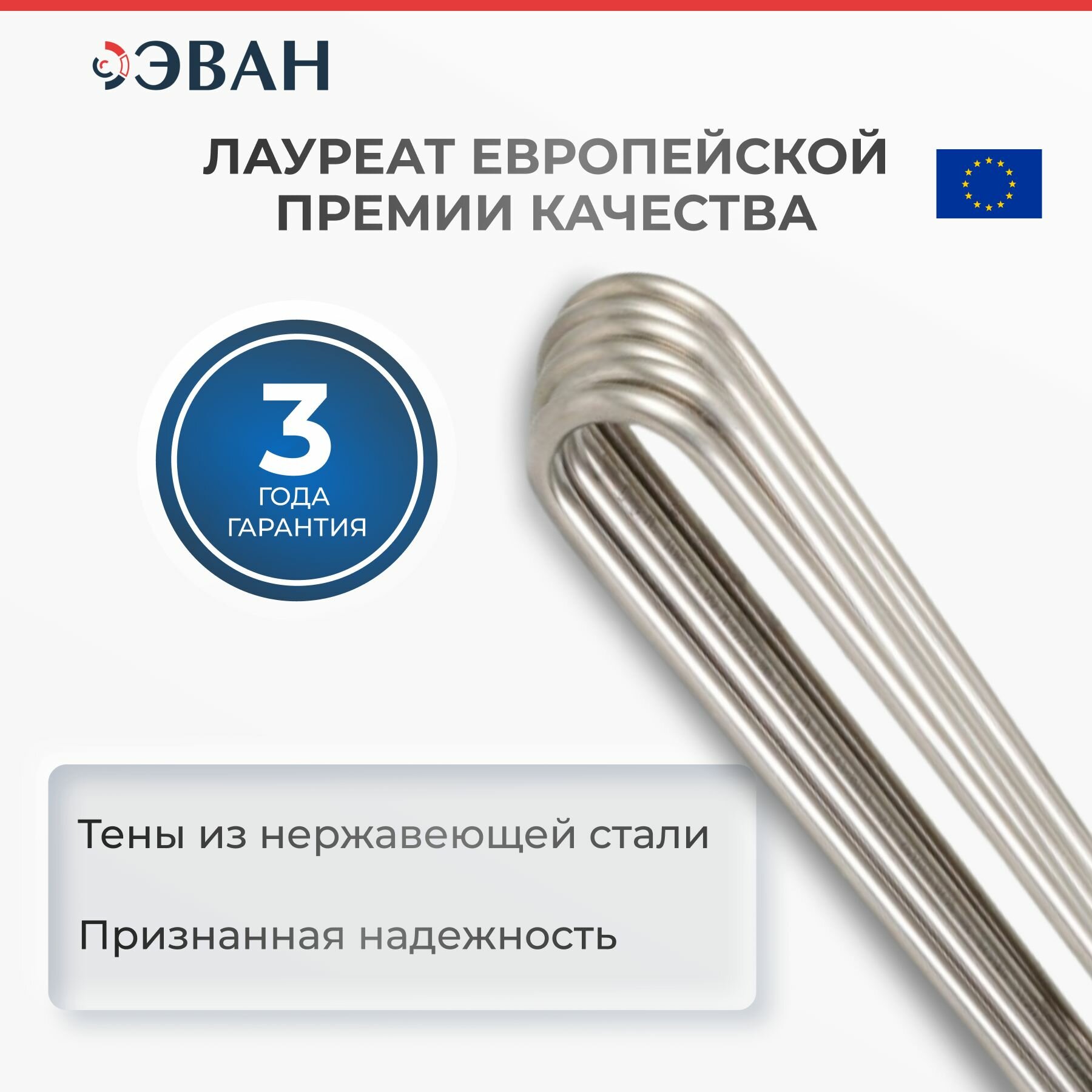 Электрокотлы для отопления ЭВАН EXPERT PLUS мощностью от 5 до 27 кВт — это готовая мини-котельная для частного дома, включающая циркуляционный насос, расширительный бак, группу безопасности, воздухоотводчик, электронное управление самим котлом и системой горячего водоснабжения (ГВС). Ключевые преимущества ЭВАН EXPERT PLUS. Функционал: Встроенный Wi–Fi для дистанционного управления котлом. Улучшенная энергоэффективность за счет исключения перегрева теплоносителя/воздуха благодаря новым алгоритмам регулирования. Поддержка погодозависимого режима управления температурой теплоносителя. Поддержка беспроводных датчиков температуры MyHeat. Одновременная работа 2 проводных и 2 беспроводных датчиков температуры. Ежедневная корректировка даты и времени с серверов в Интернет. Суточное и недельное программирование температуры. Девятиступенчатое управление мощностью (для котлов 18, 21, 24, 27 кВт). Проводной датчик комнатной температуры в комплекте. Высокий КПД ~ 99,5%. Управление: Локальный веб–интерфейс для управления котлом при отсутствии Интернет. Удаленное управление котлом по Интернет из личного кабинета облачного сервера «Эван». Управление котлом голосом по Интернет через мобильное приложение Яндекс. Алиса или Яндекс. Станция. Цифровая шина OpenTherm (рекомендуется использование с контроллерами MyHeat – 100% совместимость). Каскадное управление: котел ЭВАН «EXPERT PLUS» в качестве «ведущего». Безопасность: Информирование о сбоях котла через Интернет. Защита от завоздушивания – автоматический воздухоотводчик. Защита от перегрева – аварийный самовозвратный датчик (температура срабатывания – 92±3°С). Защита от избыточного давления – предохранительный клапан. Защита от отказа (обрыва или короткого замыкания) датчиков температуры и давления. Сохранение работы котла при возникновении неисправности реле («залипании»). При обнаружении неполадки котел продолжит отапливать дом, учитывая положение неисправного («залипшего») реле. Проверка работоспособности реле. Защита от выхода из строя электроники – независимое аварийное отключение нагрева контактором. Возможность ограничения потребляемой котлом мощности (кратно количеству ступеней). Защита от замерзания теплоносителя – контроль температуры теплоносителя в системе отопления при работе котла в режиме ожидания («антизамерзание»). Возможность программного выбора типа теплоносителя (вода или антифриз). Возможность использовать в качестве теплоносителя как воду, так и незамерзающие жидкости сертифицированные для систем отопления. Надежность: Штатное подключение электроники котла к стабилизатору/ИБП/УЗИП для защиты от импульсных перенапряжений. Высококачественные, надежные реле с низким уровнем шума. Качественные ТЭНы из нержавеющей стали. Надежный циркуляционный насос Wilo. Надежные датчики давления и температуры. Ротация ТЭНов для увеличения ресурса нагревательных элементов. Блок питания электроники с защитой от высоковольтных импульсов, рассчитанный на работу в диапазоне напряжений от 85 до 305 В. Гарантия — 36 месяцев. Функционал мини–котельной: Встроенный циркуляционный насос. Емкий расширительный бак 12 л. Автоматический воздухоотводчик. Горячее водоснабжение: Управление температурой воды ГВС при подключении бойлера косвенного нагрева, трехходового клапана и датчика температуры на 1
