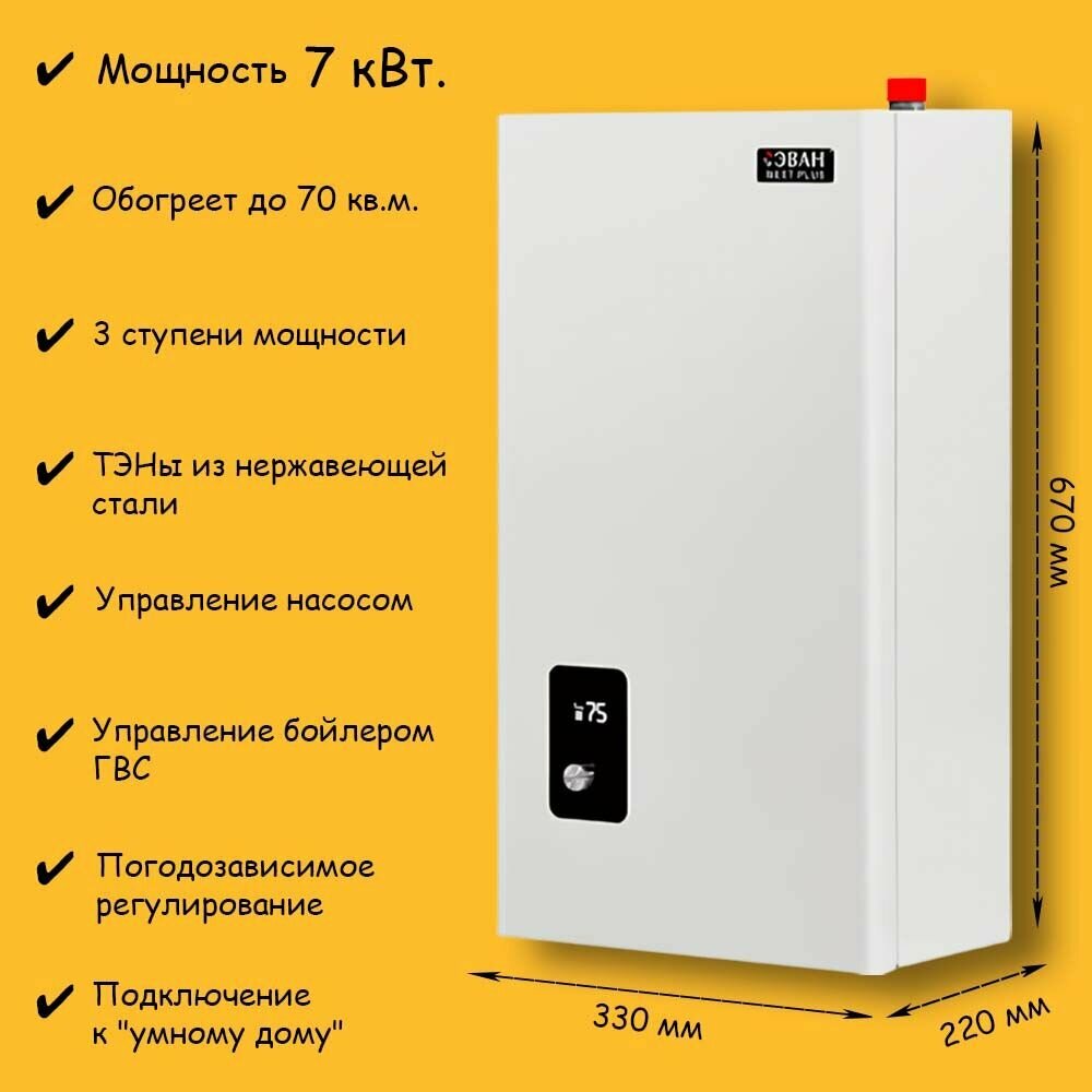 Котел электрический ЭВАН NEXT Plus 7 кВт, 220 / 380 В, для отопления