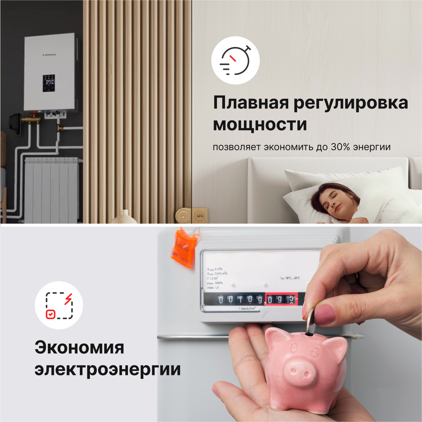 - Панель управления адаптирована для подключения уличного и комнатного термостата.