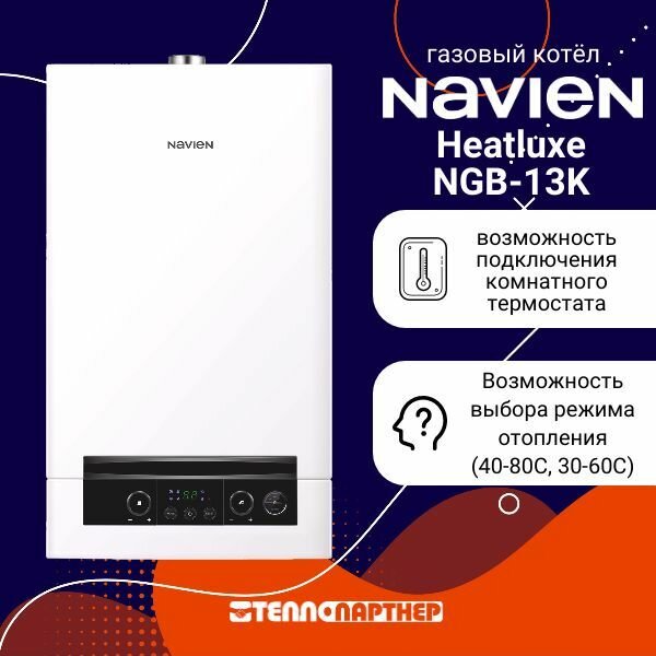 Котел газовый Navien Heatluxe NGB210 - 13K настенный, 2 конт, закр. кам. сгор, коаксиальный