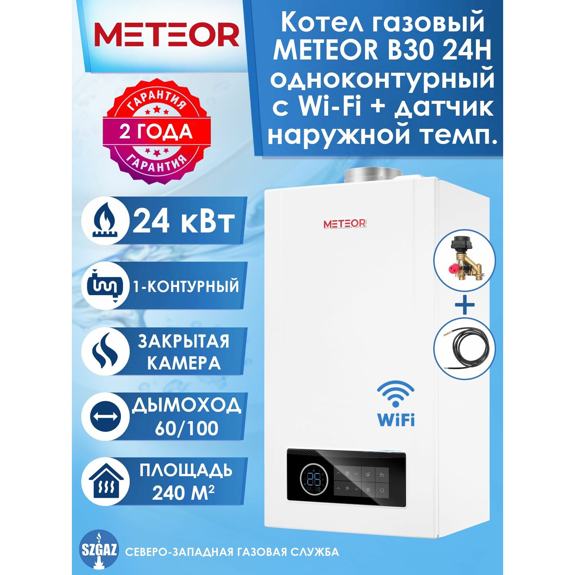 METEOR B30 24H с Wi-Fi и датчиком наружной температуры - одноконтурный конвекционный газовый котёл с закрытой камерой сгорания для отопления помещений площадью до 240 кв. м.