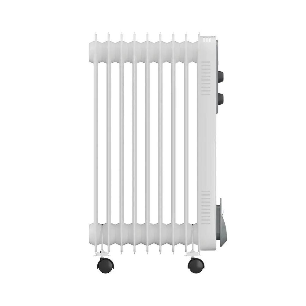 Управление обогревателем осуществляется при помощи двух поворотных регуляторов на лицевой панели, с помощью которых можно выбрать один из трёх режимов нагрева и выставить температуру. Специальные колесики и удобная ручка позволяют с легкостью перемещать масляный радиатор с одного места на другое.