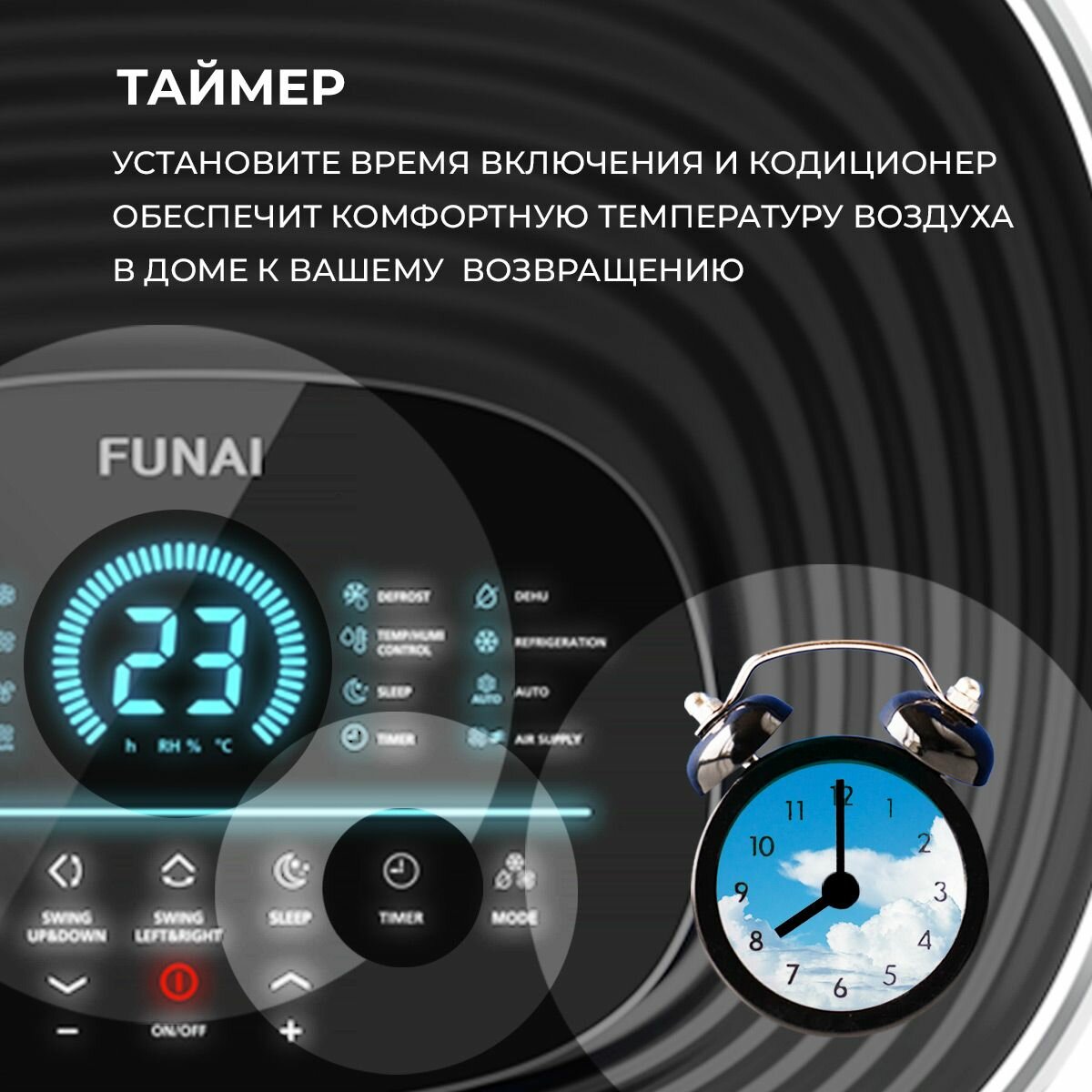 - энергоэффективность. Мобильный кондиционер имеет низкое энергопотребление. Мобильные кондиционеры Funai имеют класс энергоэффективности А в соответствии с законодательством России и стран EAС.