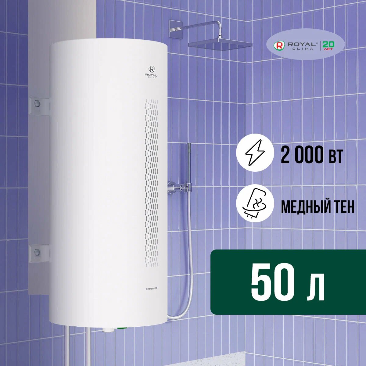 Накопительные водонагреватели ROYAL CLIMA RWH-С50-RE - это компактные и изящные приборы, которые сочетают в себе передовые технологии для долгой и надежной работы. Серия водонагревателей COMFORTE от ROYAL CLIMA зарекомендовала себя на рынке благодаря высокому качеству и продуманному дизайну.