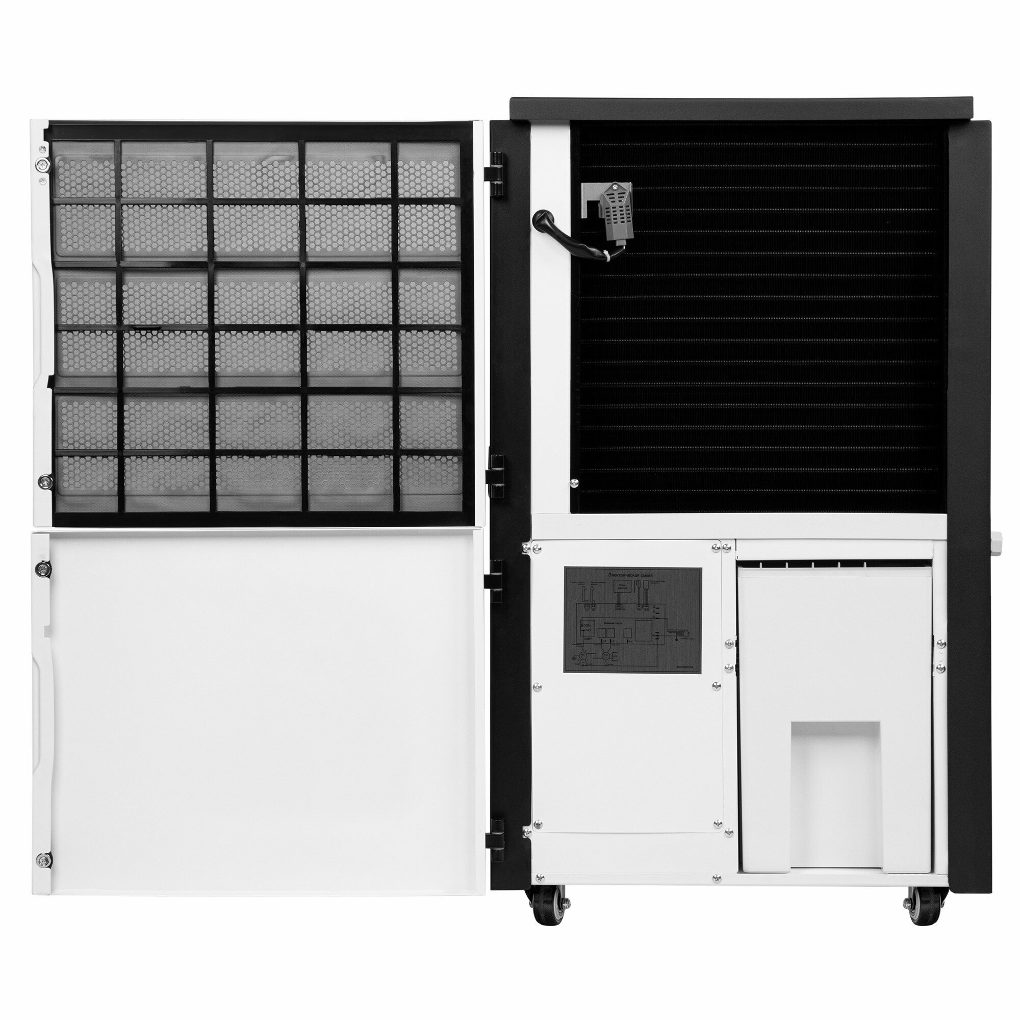 Предусмотренные в конструкции эргономичные ручки, "утопленные" в боковых панелях осушителя, и прочные шасси обеспечивают удобство использования прибора и возможность быстрого перемещения в нужное место.