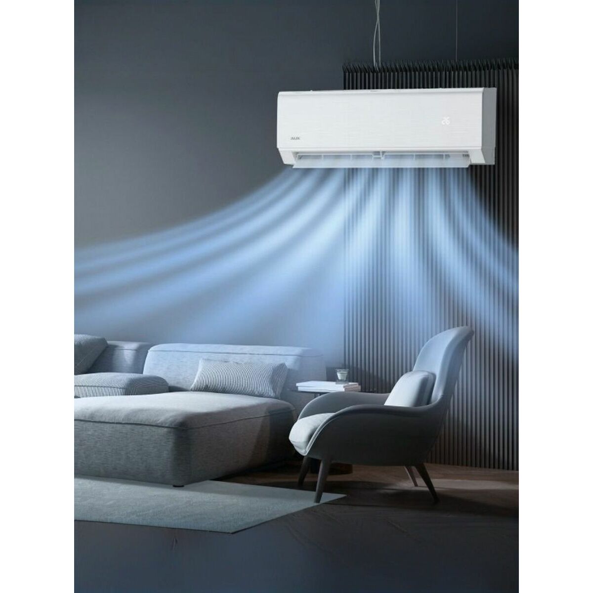 Система оснащена инновационной системой циркуляции воздуха, которая исключает ощущение сквозняка за счет специальных жалюзи и системы микроперфорации, равномерно распределяющей поток воздуха. Важной особенностью является автоматическая система самоочистки, защищающая от бактерий и аллергенов, что позволяет подавать свежий и чистый воздух в помещение.