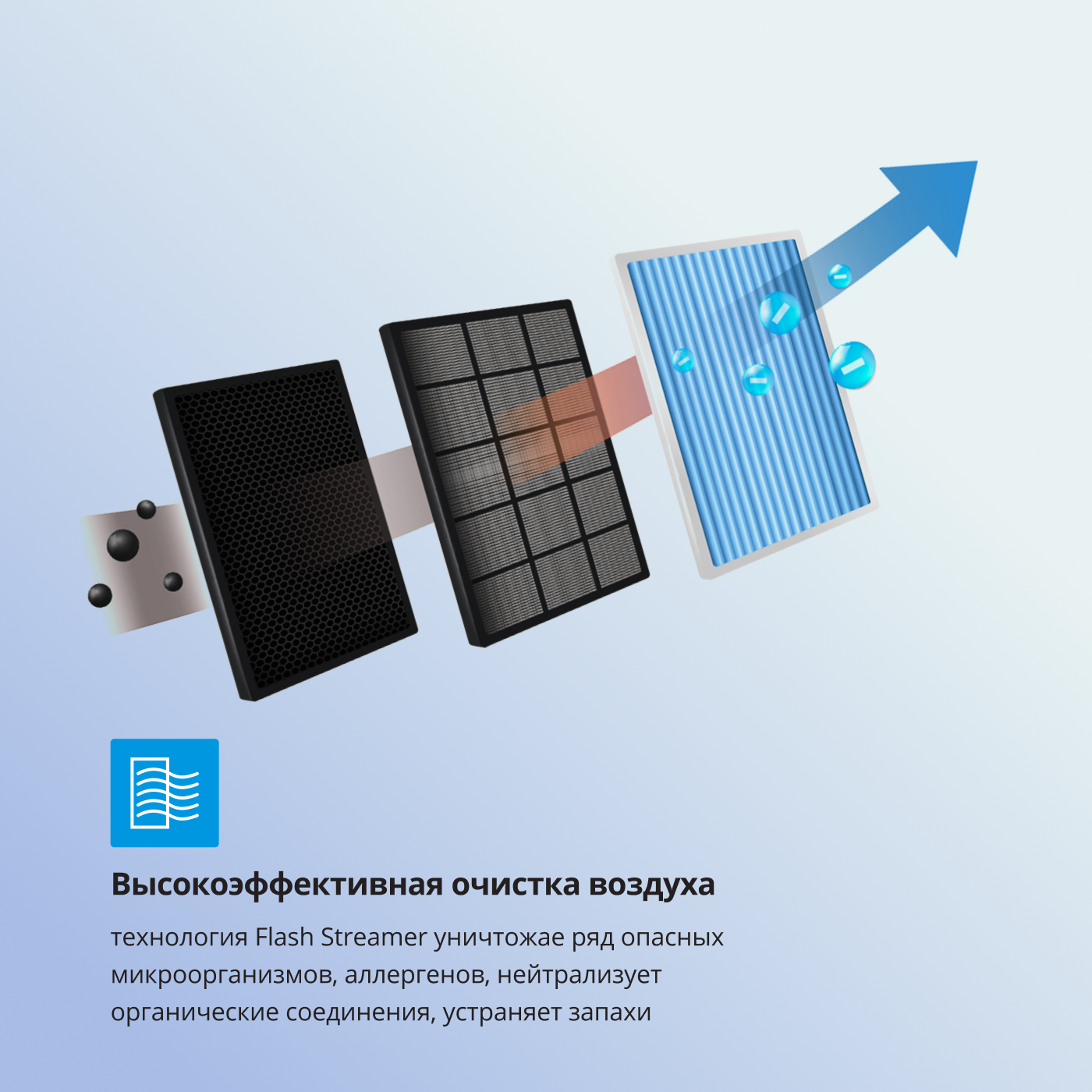 Сплит-система оснащена интеллектуальной технологией распределения потока воздуха и датчиком активности, что обеспечивает равномерное охлаждение или обогрев в помещении и автоматическое переключение в энергосберегающий режим при отсутствии людей. Кроме того, функция Flash Streamer предлагает дополнительную защиту, устраняя вредные микроорганизмы и улучшая качество воздуха в помещении.