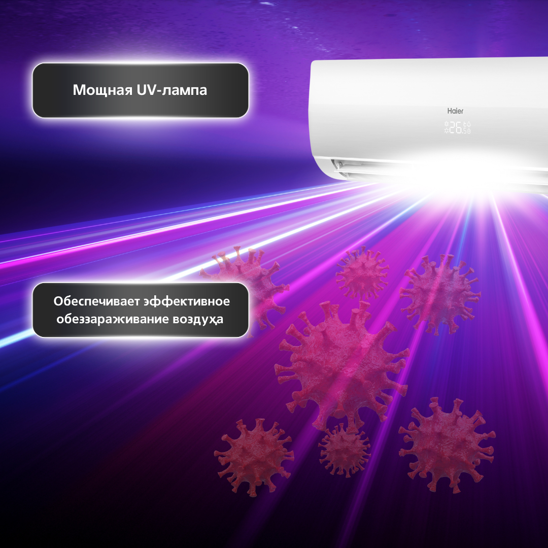 Система обладает мощностью охлаждения и обогрева в 2500 Вт, обеспечивая быстрый и эффективный контроль температуры. Также предусмотрен модуль Wi-Fi для удобного дистанционного управления настройками через смартфон. Фильтр антибактериального типа заботится о чистоте воздуха, нейтрализуя пыль и аллергены.
