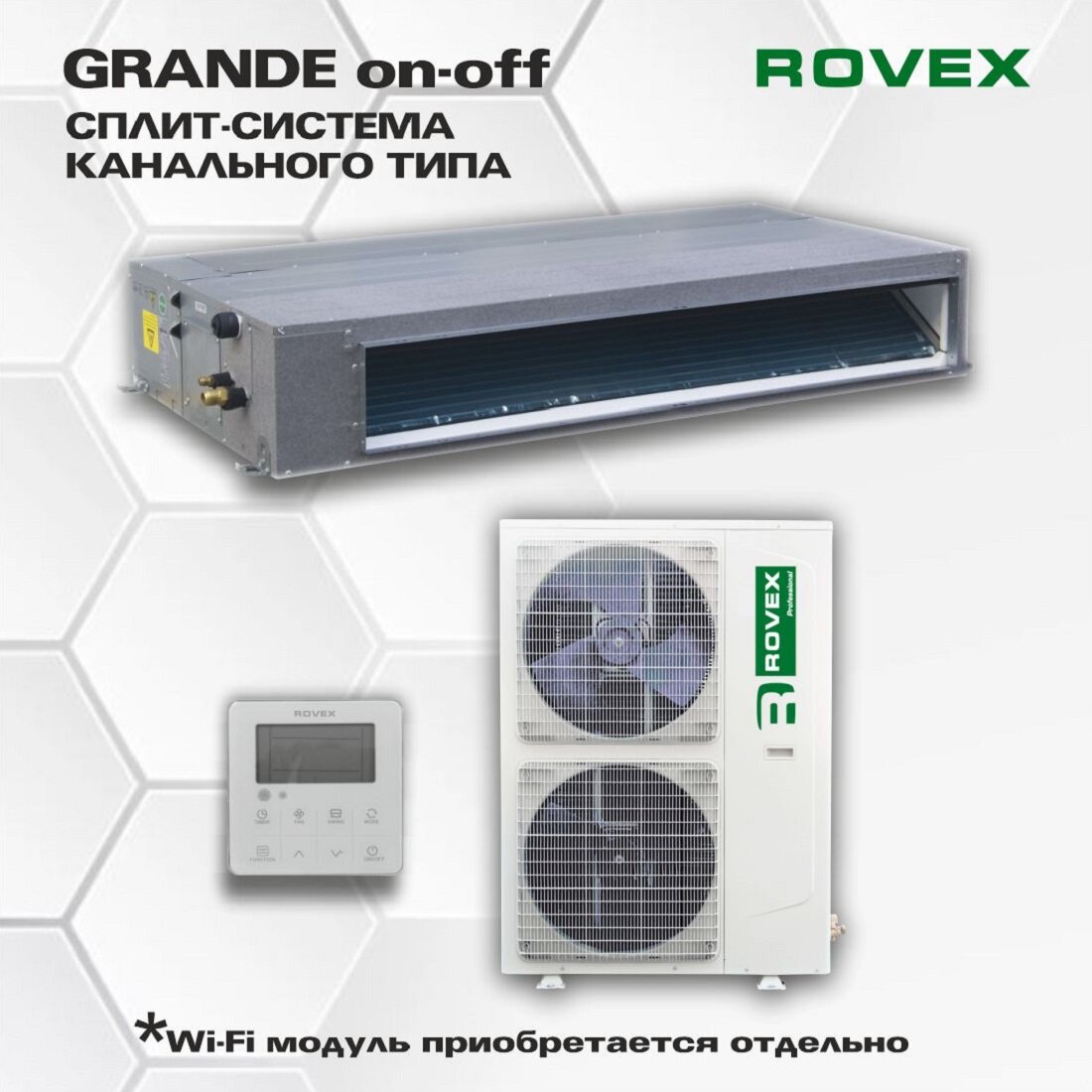 Сплит-системы ROVEX канального типа – это вид системы кондиционирования воздуха, при котором внутренний блок интегрируется в воздушные каналы помещения. Это обеспечивает равномерное распределение охлажденного или нагретого воздуха по всему помещению, в отличие от других типов кондиционеров, которые направляют воздух в определенную зону. Внешний блок устанавливается вне помещения. Он содержит компрессор, конденсатор и вентилятор. Внутренний блок находится внутри помещения, скрытый в воздушных каналах. Внутренний блок содержит испаритель и вентилятор. Воздушные каналы - это система труб, через которые циркулирует обработанный воздух, обеспечивая равномерное охлаждение или отопление помещения. Внутренний блок сплит-системы канального типа монтируется в межпотолочном пространстве. И скрывается от глаз. Нет видимых блоков. Поэтому этот тип кондиционера идеально подходит для любого интерьера. Один из основных принципов работы канального кондиционера — это использование воздушных каналов для распределения воздуха. Поэтому они способны охладить или обогреть большие помещения (большие дома, офисы, коммерческие помещения). Дополнительные функции: Турбо режим Интеллектуальная разморозка высокая эффективность работы Работа при низких температурах Авторестарт Покрытие теплообменника «Golden Fin» Подключение к системе управления здания