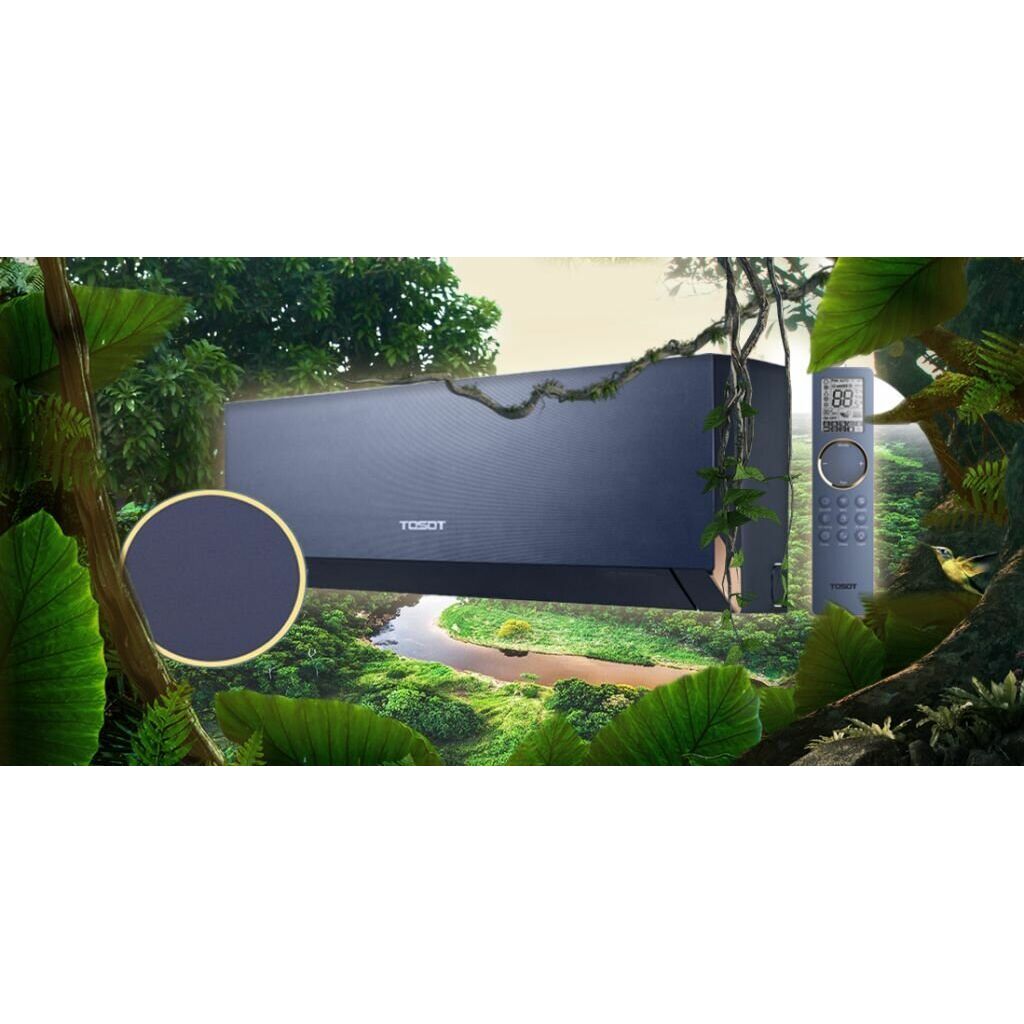 Элегантный дизайн сплит-системы сочетает в себе цвета темно-синего индиго и золотистого шампанского, а также турмалиновую текстуру и матовую поверхность. Такое стильное устройство станет изысканным элементом интерьера, обеспечивая при этом комфорт и удобство для всех членов семьи.