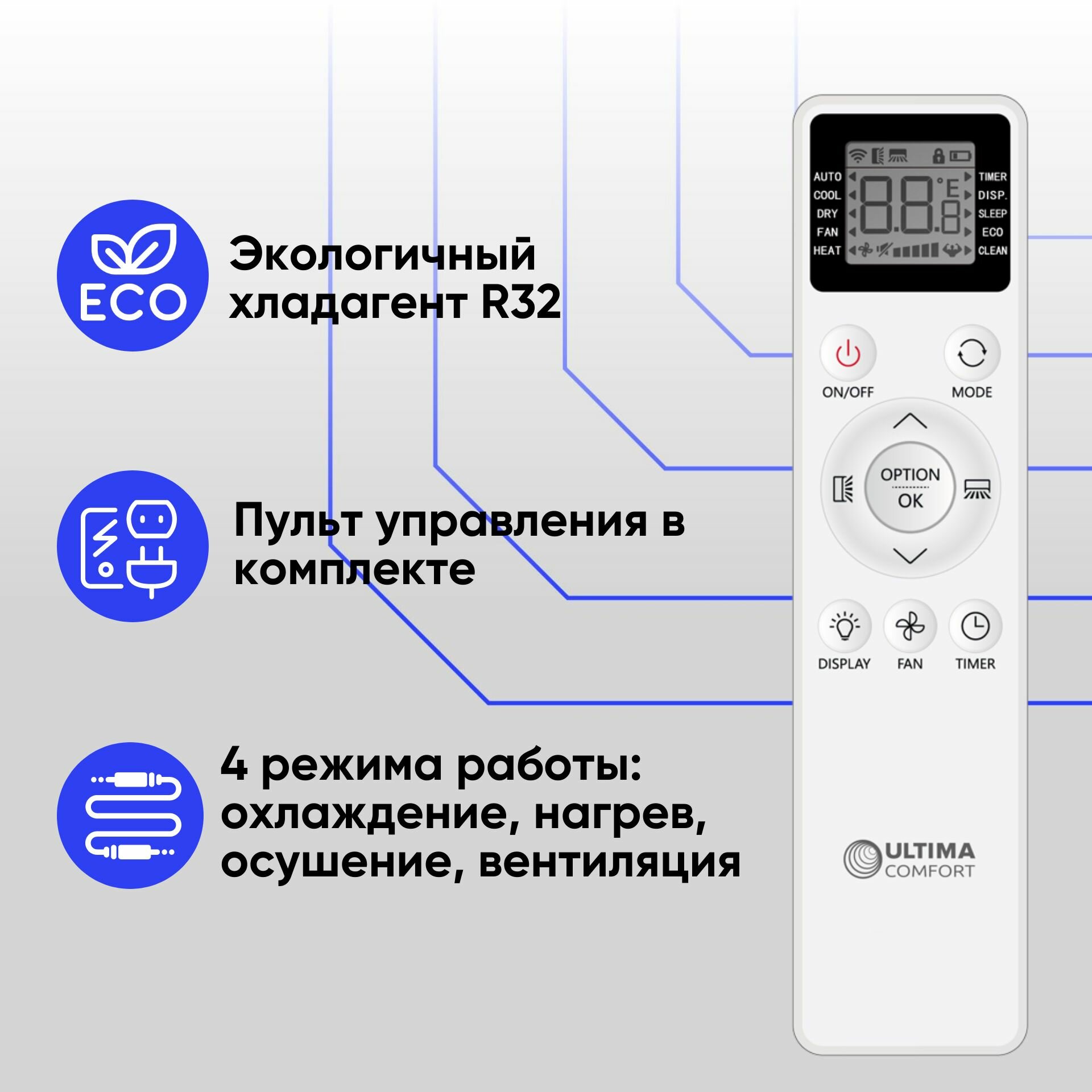 Сплит-система Ultima Comfort ECS-07PN — это современное решение для создания комфортного микроклимата в вашем доме или офисе. Она предлагает высокую энергоэффективность и стильный дизайн, который гармонично вписывается в любое помещение.