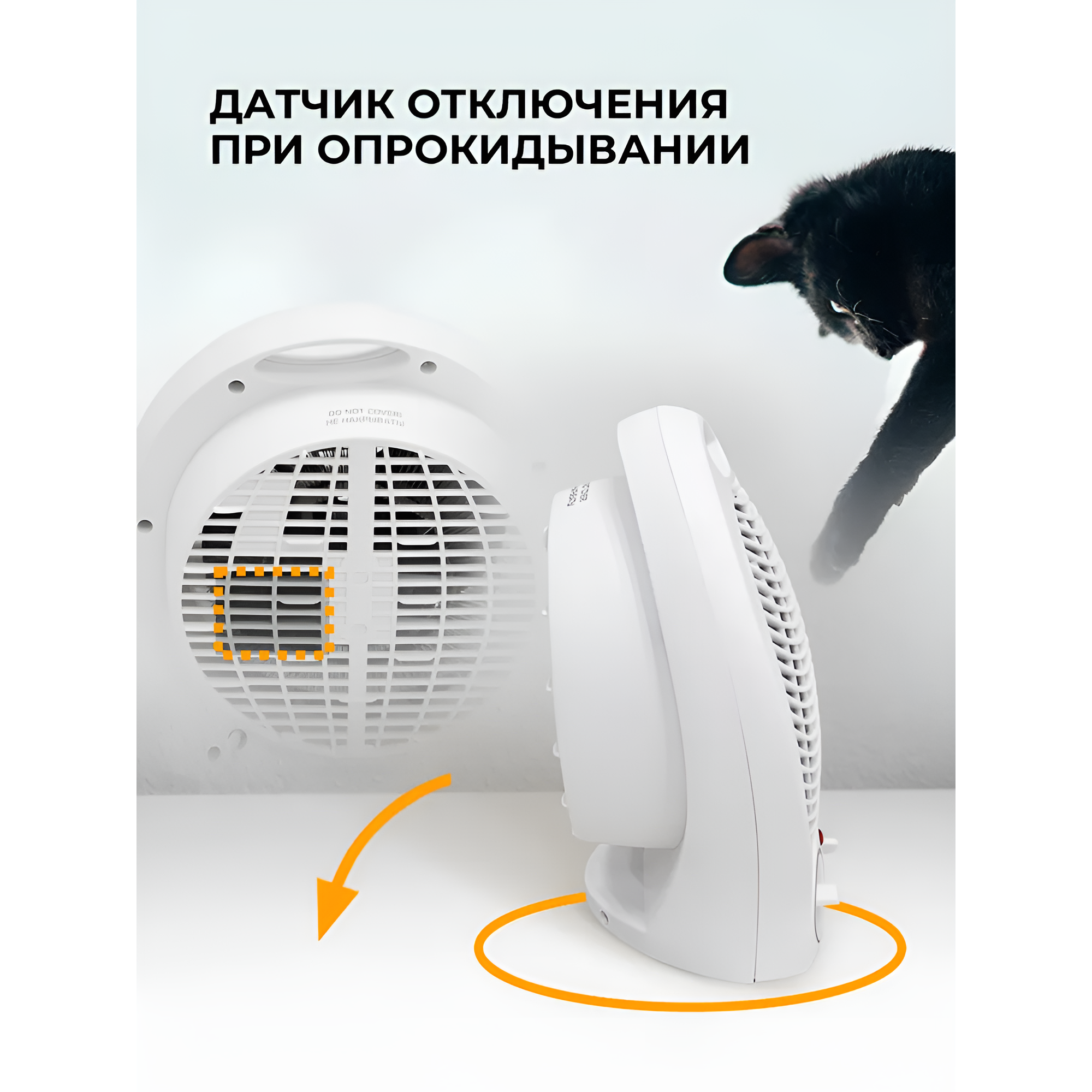 Устройство обладает встроенной защитой от перегрева, а корпус изготовлен из термостойкого пластика. Тепловентилятор моментально прекращает работу при опрокидывании, является безопасным для вашего дома.