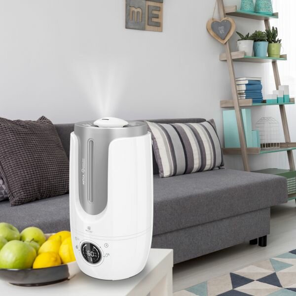 Отличительной чертой серии ANTICA является сочетание нескольких функций в одной модели. Помимо основной функции увлажнения воздуха с оптимальной для жилого помещения производительностью 300 мл в час, в модели установлен гигростат, позволяющий точно контролировать уровень влажности в помещении от 40 до 80 %, а также ароматизатор воздуха. Узнать о текущем уровне влажности, а также получить всю информацию о работе прибора позволяет информативный дисплей с точной индикацией всех режимов работы. ANTICA оснащена объёмным резервуаром для воды 4 литра, таймером, сенсорным управлением и 3 скоростями выхода пара.