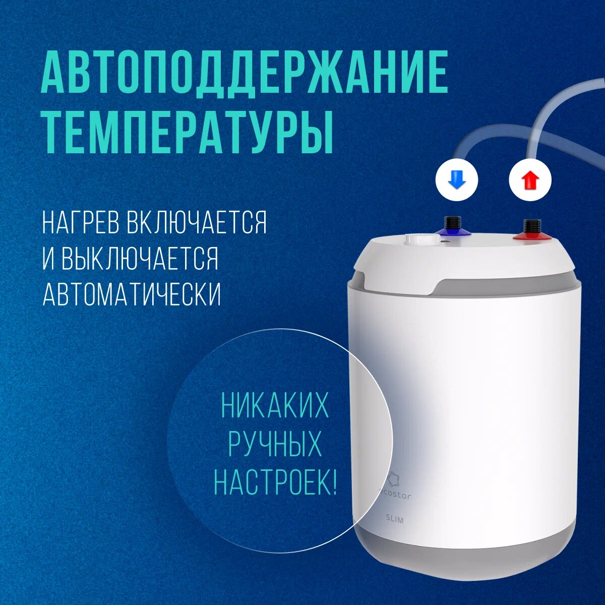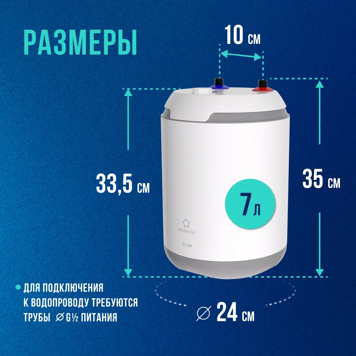 Водонагреватель накопительный Ecostar SLIM EWH-SL7-CEU - это современное и надежное решение для обеспечения горячей водой в вашем доме.